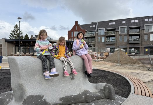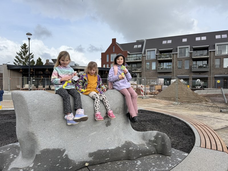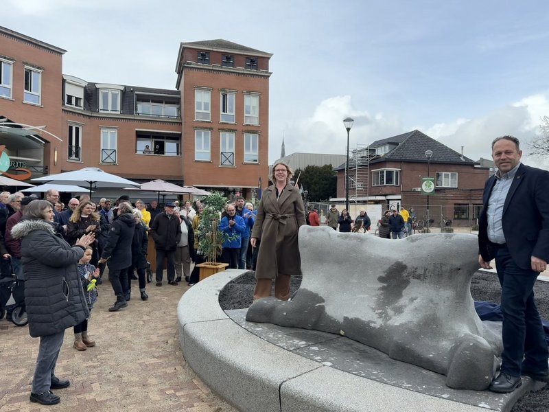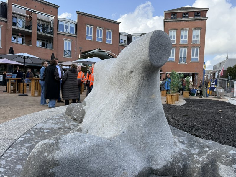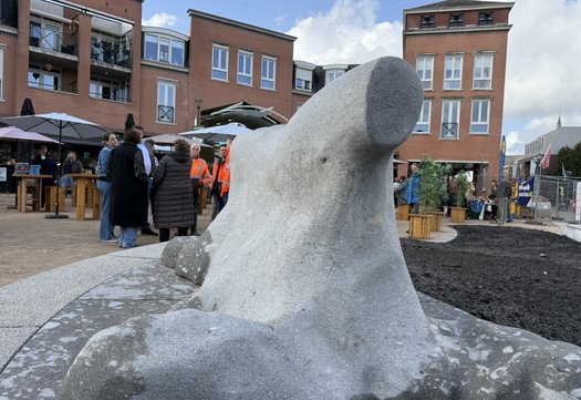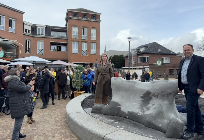 Wethouders Marielle Doremalen (Kunst, cultuur en erfgoed) en Corné Machielsen (Ruimtelijke ordening en leefomgeving) onthulden samen het kunstwerk. Het lichtgrijze natuursteen in de vorm van een koeienhuid is er niet alleen om te bekijken, maar is echt onderdeel van de openbare ruimte op het plein. Door de aanwezige kinderen werd er al volop geklommen, ontdekt en gespeeld.
