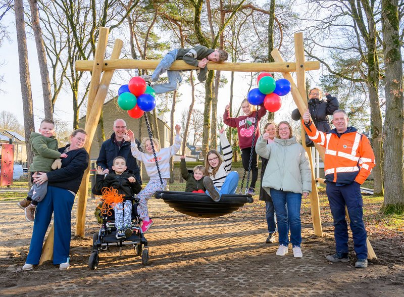 Ginny Pijpers, moeder van Mats: “Als gezin zijn we vaak bij de speeltuin te vinden, maar Mats was vooral aan het toekijken. Nu kan hij wel meedoen en samen spelen. Dat gunnen wij Mats echt! We zijn dan ook erg blij dat de schommel er nu is. Ook Mats keek al vanaf de eerste werkzaamheden enthousiast naar deze dag.”